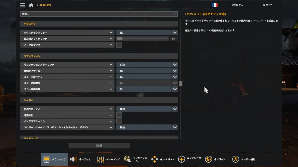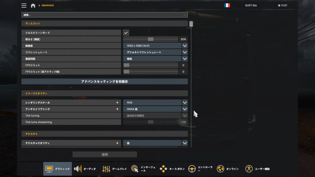 色々と落とし所を探っていたのですが、現段階でETS2の設定はこんな感じで落ち着きました。